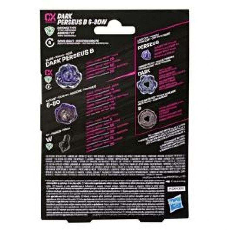 Vive la emoción de la próxima generación de arenas, lanzadores y tops Beyblade con el Kit inicial Beyblade X Dark Perseus B 6-80W, el cual incluye 1 top de rotación derecha y tipo ataque y un lanzador (Requiere Beystadium, se vende por separado). Lánzate a la batalla o reconfigura la hoja, el trinquete y el piñón intercambiables del top de este Kit inicial con los otros tops Beyblade X (se venden por separado) para crear tu propio e imbatible top Beyblade. Beyblade X utiliza el nuevo Sistema de Aceleración X para llevar tu juego al siguiente nivel. Cuando el engranaje del top Beyblade X toca el riel del Beystadium, se puede propulsar a velocidades extremas alrededor de la arena para generar impresionantes choques y épicas explosiones. Los competidores lanzan sus tops a feroces batallas contra los tops de sus oponentes anotando puntos en cada confrontación. El primero en anotar 4 puntos será el ganador. Los juguetes Beyblade de Hasbro con auténticas partes de metal fundido son excelentes regalos para niños y niñas a partir de 8 años.