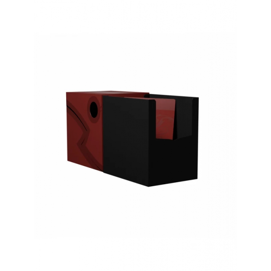 The perfect commander deck box! The Dragon Shield Double Shell is a sturdy deck box with two layers of protection all the way around. The lid wraps around the box for a secure closure or can be set to stay open for easy access to cards. Cube Shells will fit inside. The Double Shell fits inside large Nest boxes and Magic Carpets. Each Double Shell has a writing field on top for personalization and comes with a divider.