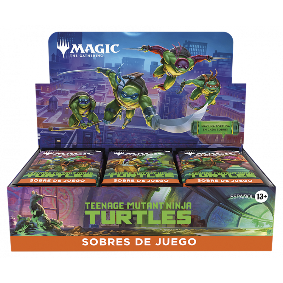 ¡Las tortugas ninja se estrenan en el campo de batalla para darle una dosis cuádruple de caos mutante a Magic: The Gathering ! Colecciona, construye y combate con una increíble plantilla de aliados y enemigos que llevan más de cuatro décadas cosechando una tremenda afición tortuguil. ¡Dales cien vueltas a los matones de Shredder con la nueva mecánica de infiltración y potencia la fuerza de tu equipo con fichas de Mutágeno para triunfar con los verdaderos héroes de Nueva York!