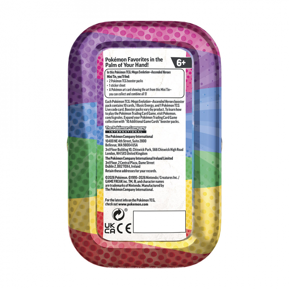 Añade más cartas a tu colección del Juego de Cartas Coleccionables Pokémon y obtén un divertido elemento coleccionable con cada una de las hermosas minilatas. Hay cinco diseños que coleccionar, y cada minilata está decorada con una ilustración que se puede combinar con el resto para formar una gran imagen. Elige tu favorita o colecciónalas todas. Sea cual sea tu decisión, estas minilatas ponen tus Pokémon favoritos en la palma de tu mano.